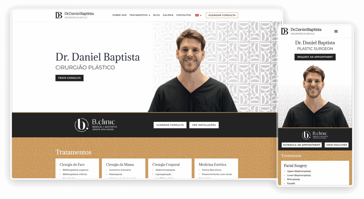 The modern design planned for the health industry with multilingual support and integration with Instagram, contributed to increased visibility and appointment inquiries, strengthening Dr. Baptista’s digital presence and making his services more accessible across Portugal.