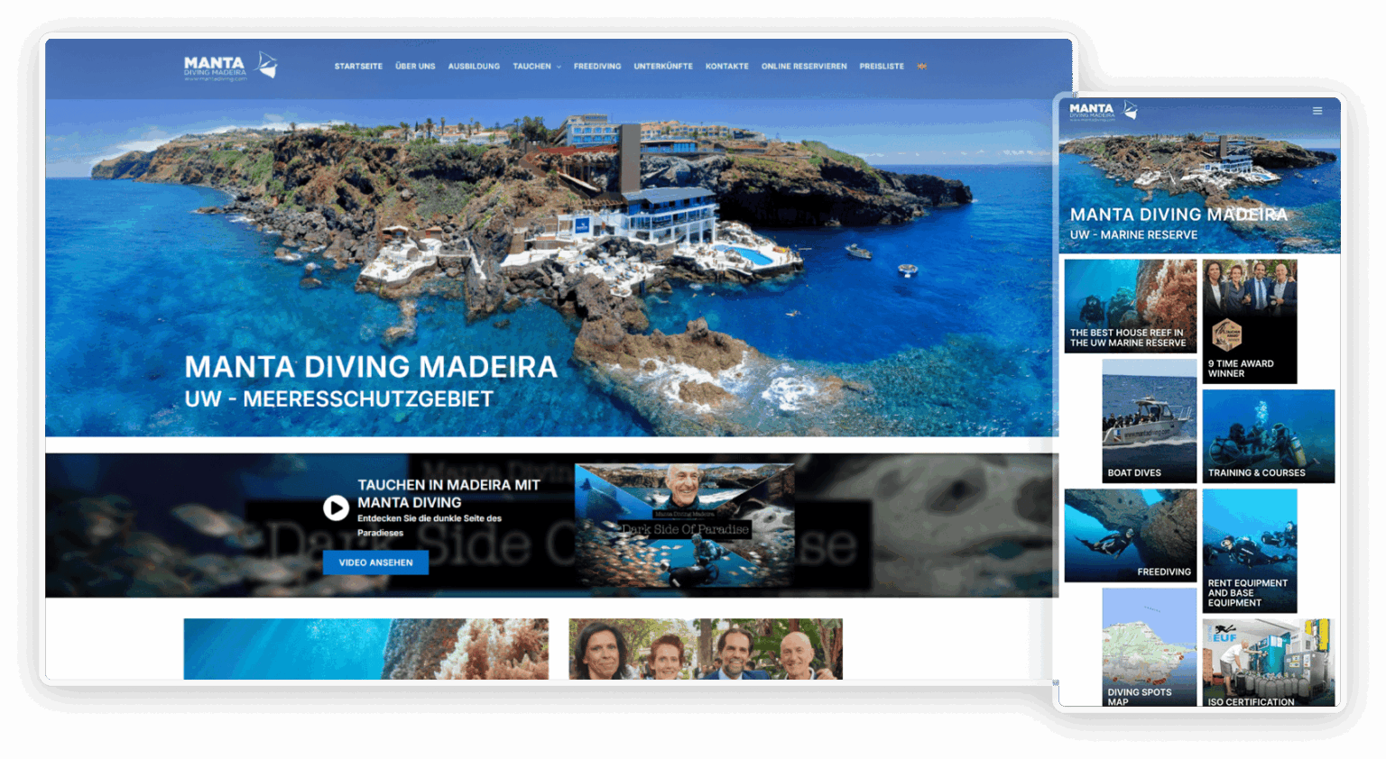 Multilingual support and improved usability contributed to greater engagement and made it simpler for users to request dive sessions directly online. The project helped strengthen Manta Diving Madeira’s position as the best choice within the diving community, both locally and abroad.